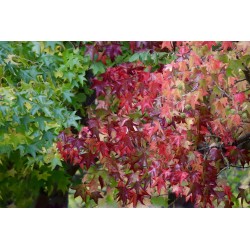 Ambrowiec amerykański, zwany również balsamicznym, jest okazałym drzewem, osiągającym ok. 20 m wysokości i 10 m szerokości. Pochodzi z Ameryki Północnej i Środkowej. Posiada pięcio- lub siedmioklapowe liście, podobne do klonu, które w okresie jesiennym przebarwiają się na efektowny wiśniowy lub ciemnoamarantowy kolor. Kora wydziela balsamiczną żywicę o przyjemnym zapachu. Jest ona wykorzystywana w przemyśle farmaceutycznym, spożywczym i kosmetycznym, m.in. do produkcji preparatów wykrztuśnych, gumy do żucia i perfum. Ambrowiec nadaje się do sadzenia w małych grupach i jako soliter. Wymaga osłoniętego, słonecznego stanowiska. Preferuje glebę lekko wilgotną, żyzną, o odczynie obojętnym. Młode rośliny są wrażliwe na mróz, dlatego zaleca się stosowanie okrywy na zimę.